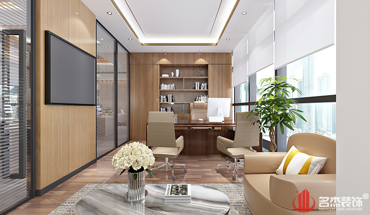 ÖÐʽÖÐÈÚÈë¶à¹¦Ð§¡¢¸öÐÔ»¯¡¢¼òÔ¼¶ø³ÉÊìµÄ°ì¹«¿Õ¼ä£¬µØ°å¡¢Ì컨¡¢Ç½ÃæµÄÑÕÉ«¶¼ÌåÏÖ׏ůӣ¬¹Å°åÖÐ͵͸×ÅÏÖ´ú£¬Ç½±ÚÉϵÄ×Ö»¾¡ÏÔ¸÷ÈË·ç·¶¡£