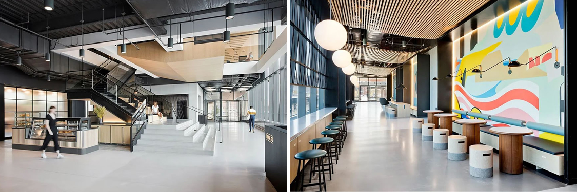 ½øÈëÈë¿ÚºÍ´óÌã¬Éè¼ÆÍŶӽ¨ÉèÁËһϵÁеÄÃŶ´¿Õ¼ä£¬ÑØ×Å´óÌõij¤¶ÈÒ»Ö±ÑÓÉ죬Ðγɸ÷¸öÊÂÇéºÍ¹«¹²¿Õ¼ä¡£Ò»Â¥¿Õ¼äÊÇÓÉÒ»¸ö¿í³¨µÄÃÀÊ³ÇøÓò×é³ÉµÄ£¬ÕâÀïµÄÉè¼ÆÊÇÒÔº½º£×÷ΪÉè¼ÆÖ÷Ì⣬²¢ÇÒºÍÒ»¸ö´øÓÐÊÒÍâ¶̨µÄÐÝÏÐÊҺͿ§·È°ÉÏàÁ¬¡£ÐÝÏÐÊÒÊÇÒ»¸ö´øÓÐÐýת»Àȵĵط½£¬ÄÚÀïµÄ×÷Æ·¶¼ÊÇÀ´×ÔÖܱߵØÇøºÍÉãÓ°ÊÒºÍÒÕÊõ¼ÒµÄ£¬ÕýºÃºÍÕâ¸öÐÞ½¨ÍêÉÆÍŽᡣ