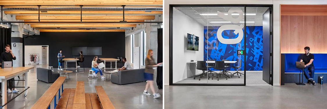 ¹ØÓÚAdidasÀ´Ëµ£¬¿ª·ÅʽµÄ°ì¹«¾ÍÒâζ×ŶàÔª»¯µÄÆÕ±éÓÃ;£¬°ì¹«×À¡¢´´Òâץ̀¡¢¿ÉÕ³ÌùµÄǽ°åÒÔ¼°ÖÇÄܾۻáÆÁÄ»ÅäºÏ×éºÏµÄ°ì¹«¿Õ¼ä£¬¿ÉÒÔÖ§³Ö¿ª·ÅËùÐèµÄÈκÎÊÂÇ鳡ºÏ¡£Éè¼Æ¾Í¸úÔ˶¯ÀàËÆ£¬ÕâÄÚÀïµÄ´´Òâ¿Õ¼äºÍѵÁ·³¡Ò»Ñù¾«Á·£¬È´ÓÖÐí¶àÔªÍòÄÜ£¬Õâ¸öÇøÓòÊÇÒ»¸öÍêÈ«¿ª·ÅµÄ´óÐͿռä¡£ÕâÄÚÀïµÄ¿Õ¼ä¶¼ÊǾ­ÓÉÉè¼ÆÍŶӵÄÈ«ÐÄÉè¼ÆµÄ£¬²ãѹľ¥ÌݼäľÖʵÄÎÂůÖʸкÍAdidas±ê¼ÇÐÔµÄЬµ×ͼ°¸´´×÷Ï໥͎ᣬ²»µ«Äܹ»Õ¹ÏÖ³öÇ¿Á񵀮·ÅÆÎÄ»¯£¬Ò²Äܹ»½«Ò»¸ö²»ÏÔÑÛµÄϸ½Ú·Å´ó³ÉÒ»¸ö¾ßÓÐÇ¿ÁÒÊÓ¾õЧ¹ûµÄ¿Õ¼ä×°ÊÎÔªËØ¡£